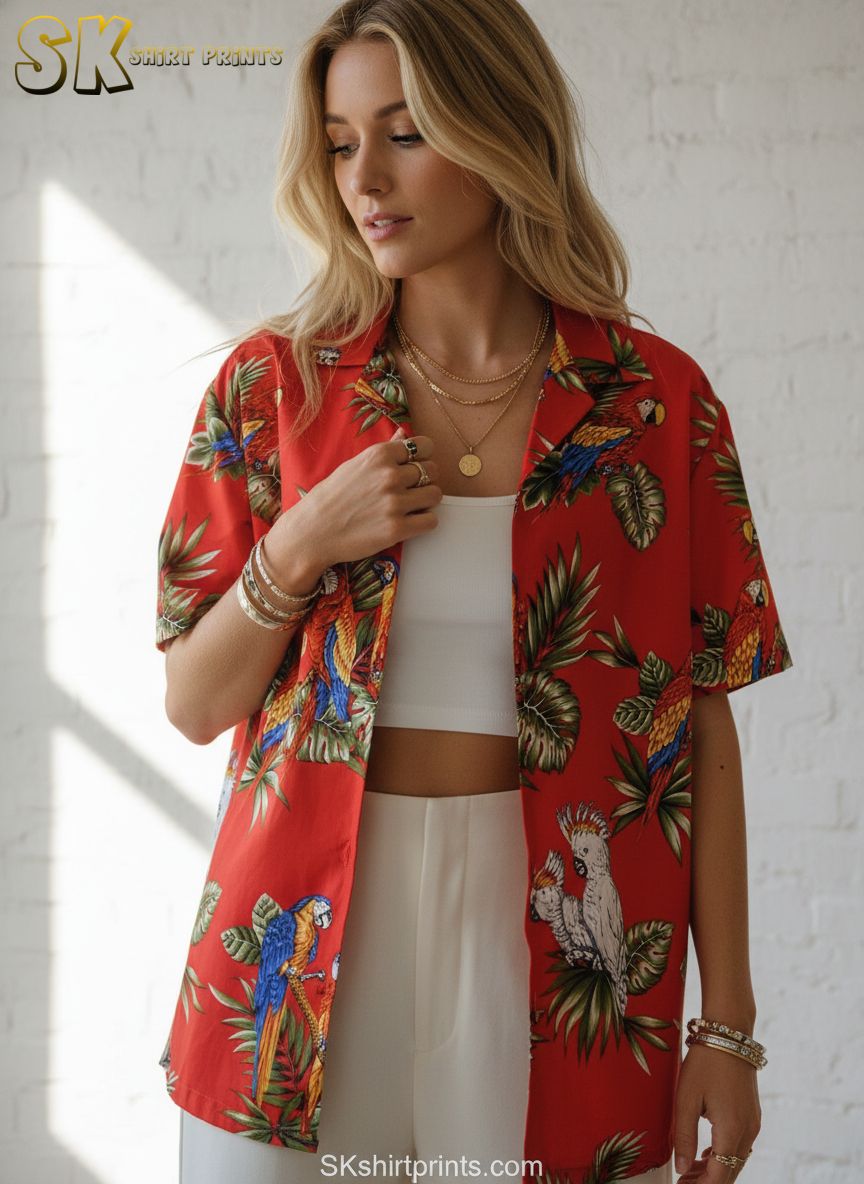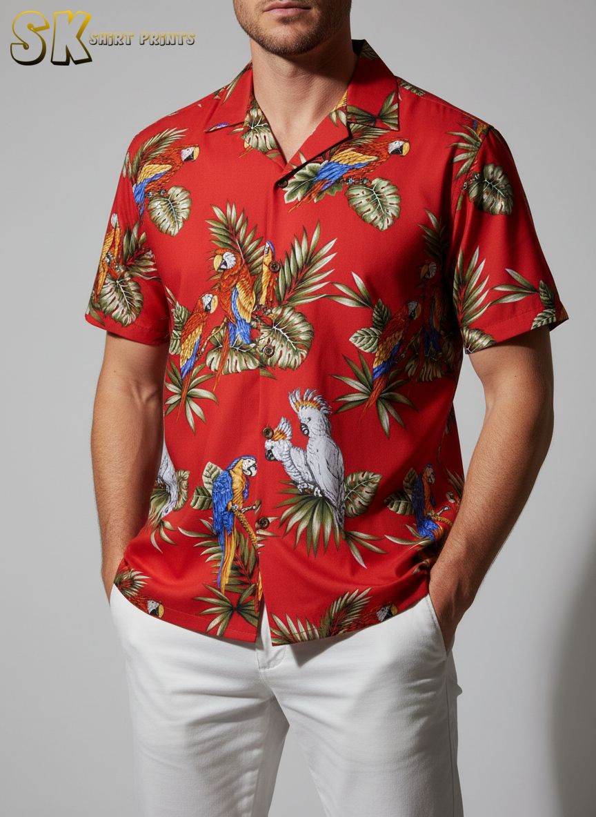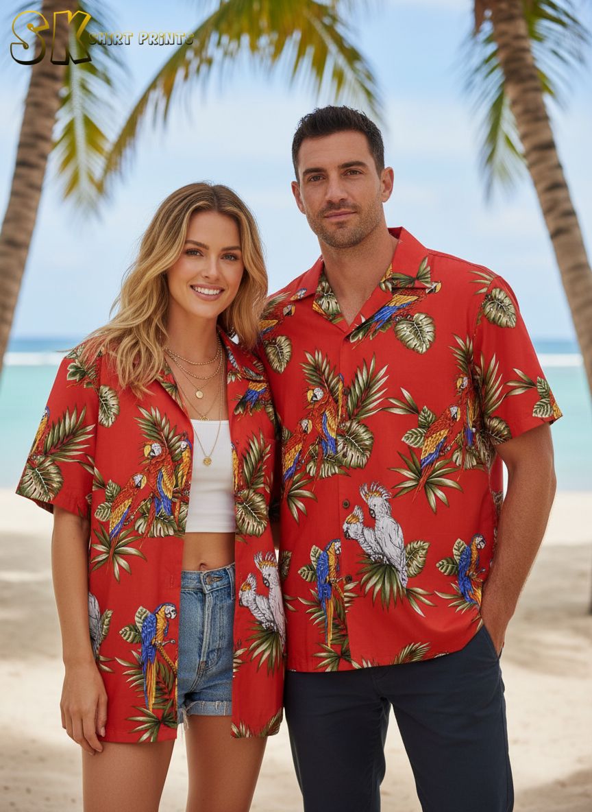 Tropical Parrot Hawaiian Shirt – Vibrant All-Over Print Beach Vacation Shirt for Men and Women