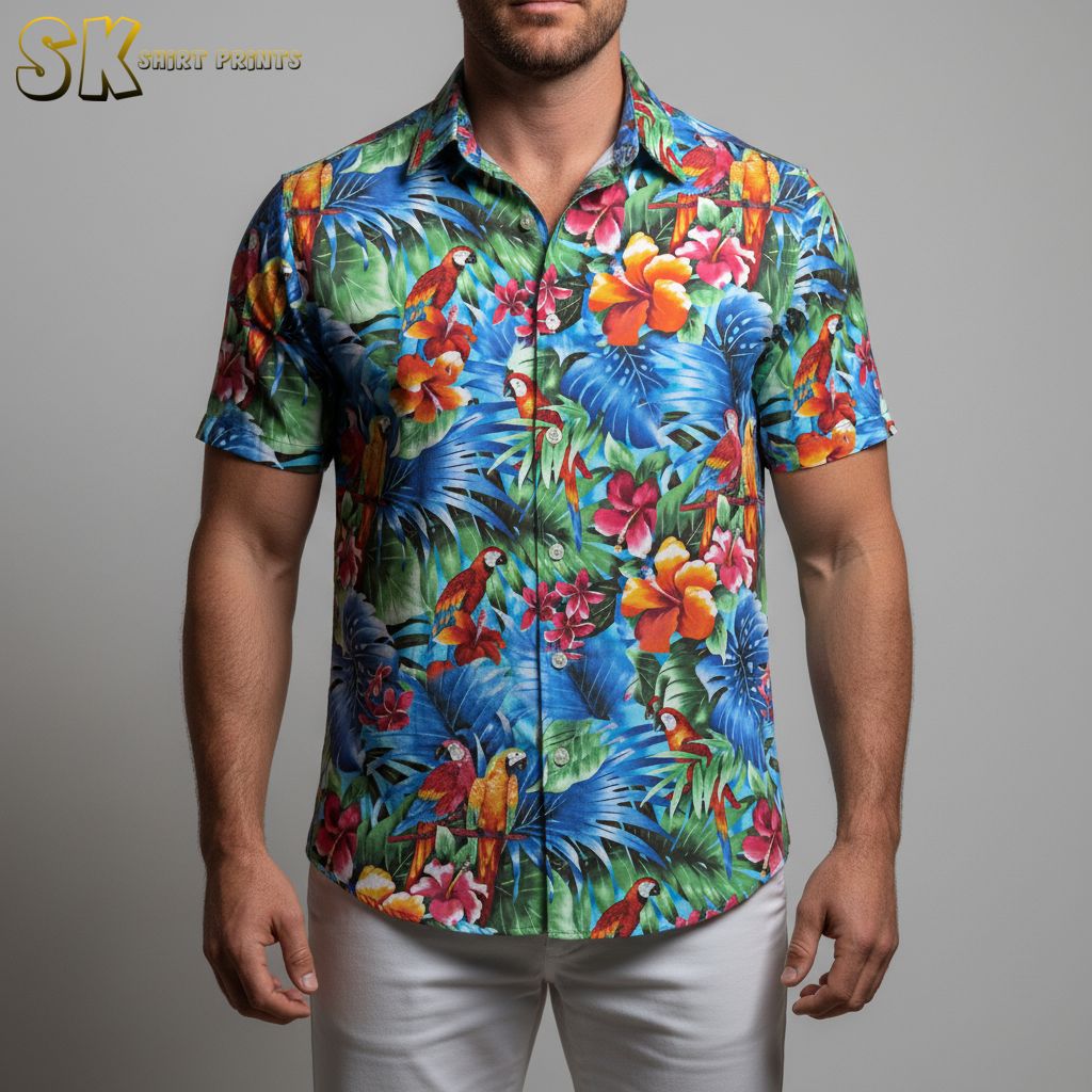 Tropical Parrot Hawaiian Shirt – Vibrant Beach Aloha Shirt for Summer Vacation and Casual Wear