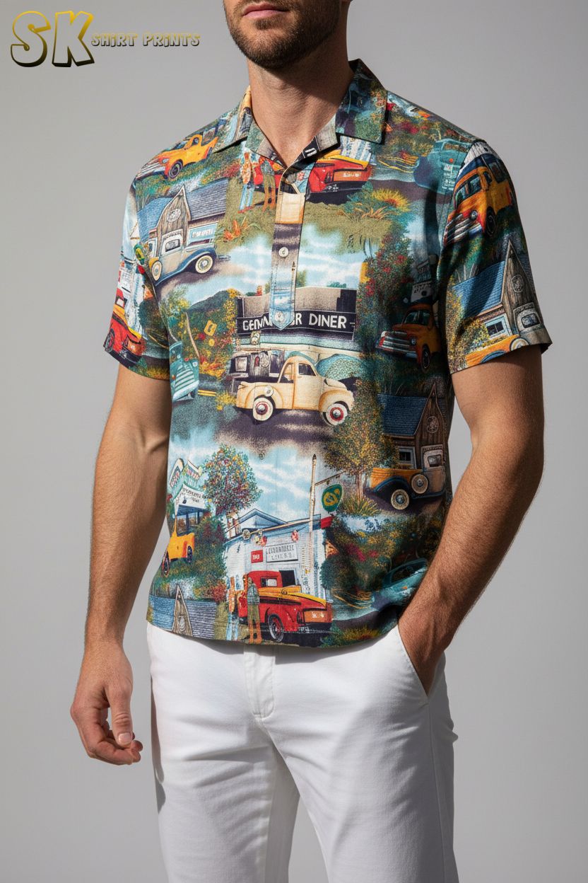 The shirt runs true to US sizing. If you prefer a relaxed Hawaiian fit or are between sizes, size up one. 100% polyester has minimal stretch — when in doubt, go bigger. Check the Size Guide above for exact measurements.